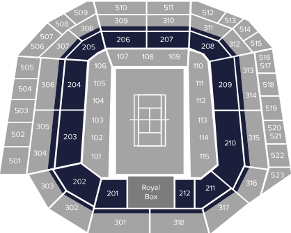 Posti a coppie sul Centre Court. Inviati tramite trasferimento mobile. Posti a sedere premium sul ring 200. Accesso a bar e ristoranti all'interno delle aree riservate ai debitori. Accesso anche ai Outside Courts .